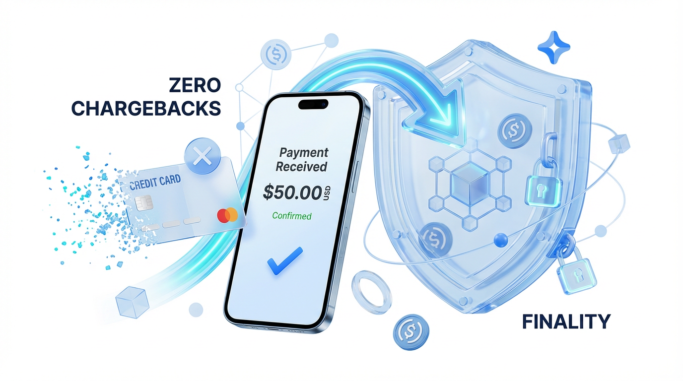 Under the hood: We use stablecoins and smart wallets so your payments settle instantly in digital USD. You don't have to manage any of that — you just see your balance.